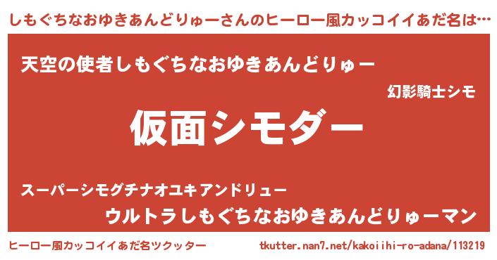 | 意味不明あだ名 | 『住所不定無職しもぐちなおゆきあんどりゅー(50歳)』 |