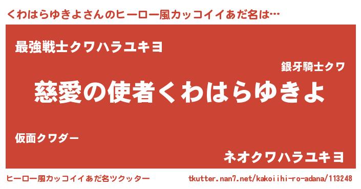 | 伝説のあだ名 | 『救世主となる占い師くわはらゆきよ』 |