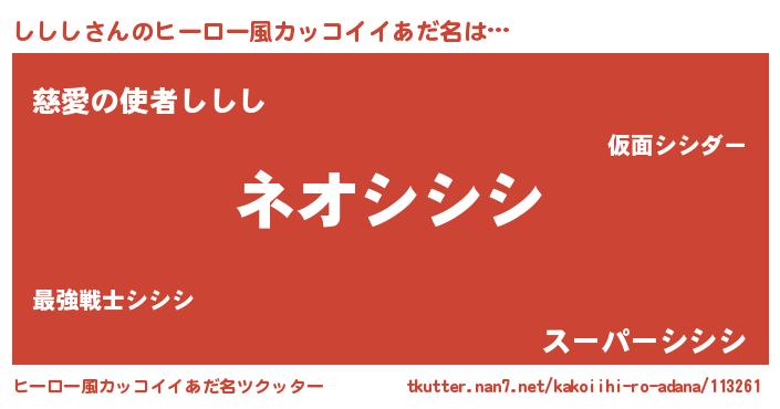 | 伝説のあだ名 | 『古文書に記された暗殺者ししし』 |