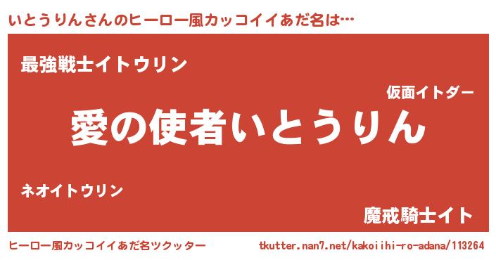 | 男性向けラノベタイトル風あだ名 | 『おまえをオタクにしてやるから、俺をいとうりんにしてくれ! 』 |