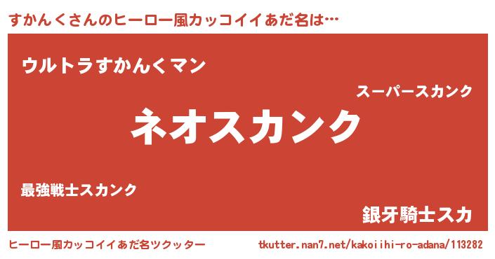 | 男性向けラノベタイトル風あだ名 | 『すかんくという概念が存在しない退屈な世界 』 |