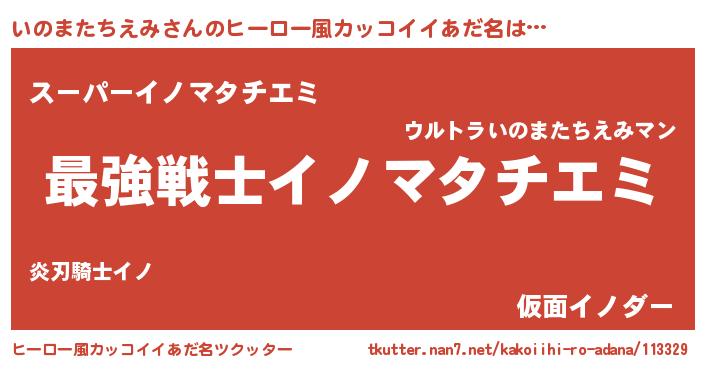 | 男性向けラノベタイトル風あだ名 | 『Re:いのまたちえみから始める異世界生活』 |