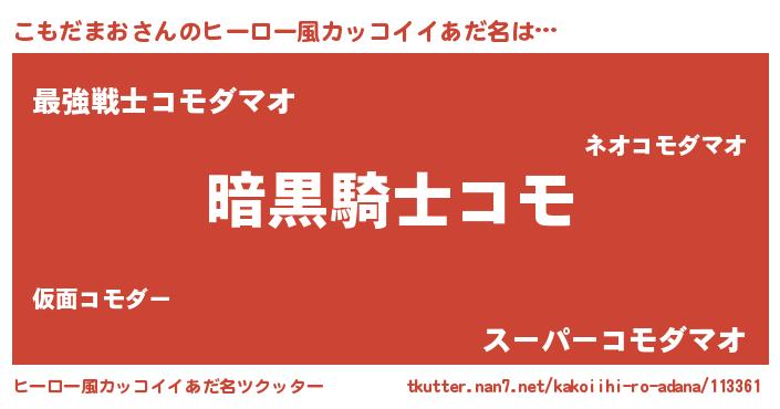 | 男性向けラノベタイトル風あだ名 | 『ダンジョンにこもだまおを求めるのは間違っているだろうか』 |