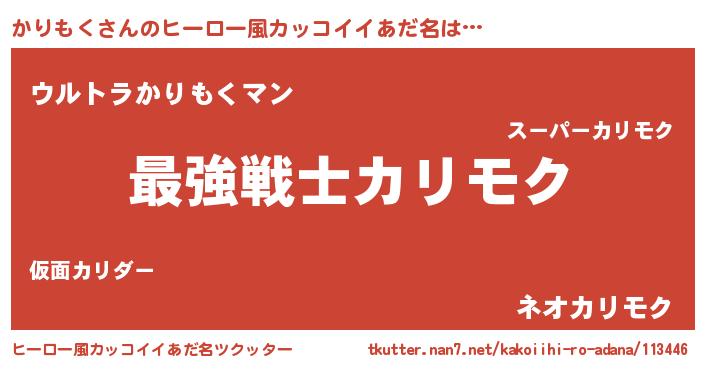 | 男性向けラノベタイトル風あだ名 | 『かりもくに滅ぼされるだけの簡単なお仕事です』 |