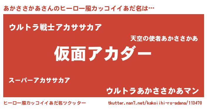 | 男性向けラノベタイトル風あだ名 | 『あかささかあ~年齢イコール彼女いない歴の魔法使い~』 |