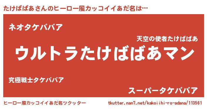 | ファンタジー風あだ名 | 『エターナルタケババアー』『タケフェル』 |