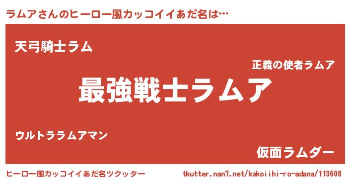 | 意味不明あだ名 | 『自称ラムア』『とにかく怪しいラムア』 |