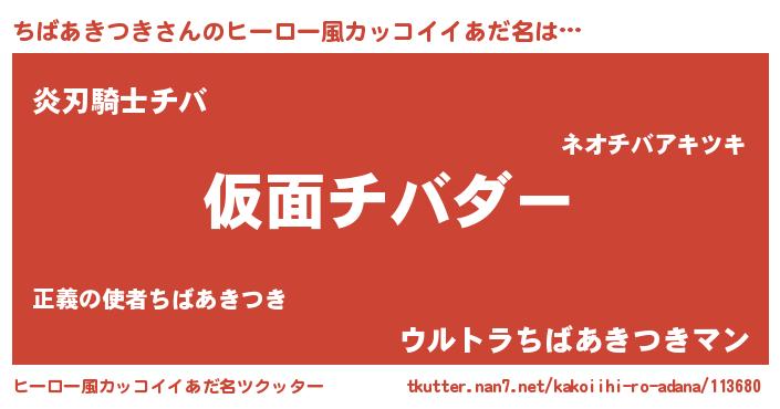 | 男性向けラノベタイトル風あだ名 | 『魔弾の王とちばあきつき』 |
