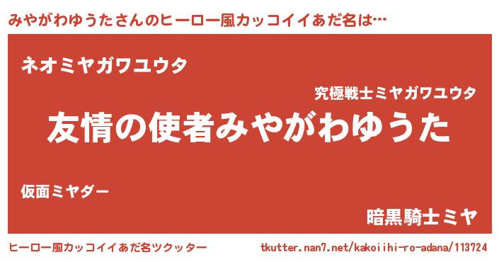 | ヘコむあだ名 | 『みやがわゆうた(爆)』『みや太郎』 |