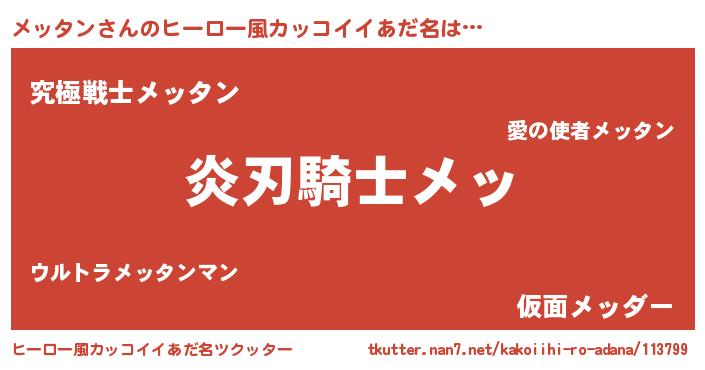 | 男性向けラノベタイトル風あだ名 | 『メッタン~年齢イコール彼女いない歴の魔法使い~』 |