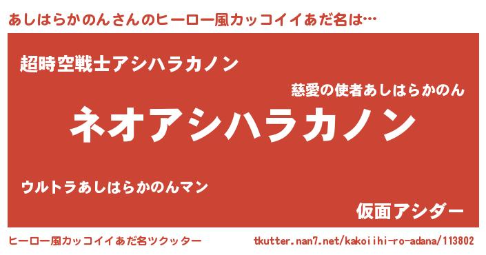 | 意味不明あだ名 | 『永久保存あしはらかのん』 |