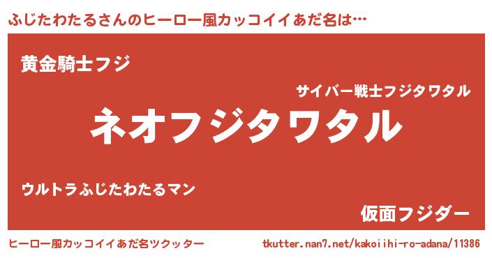 | 男性向けラノベタイトル風あだ名 | 『ふじたわたる~年齢イコール彼女いない歴の魔法使い~』 |