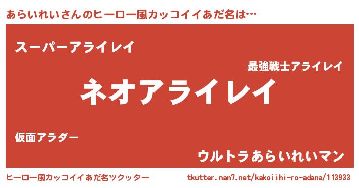 | ヘコむあだ名 | 『あらいれい(遠い目)』『あらもー』 |