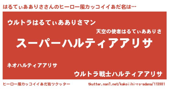 | 男性向けラノベタイトル風あだ名 | 『はるてぃあありさ~年齢イコール彼女いない歴の魔法使い~』 |