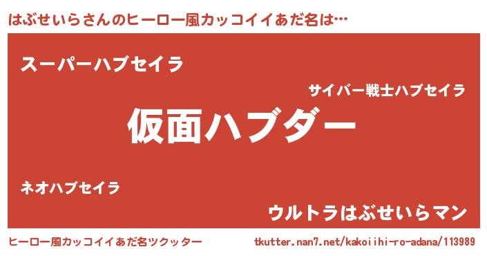 | 意味不明あだ名 | 『住所不定無職はぶせいら(56歳)』 |