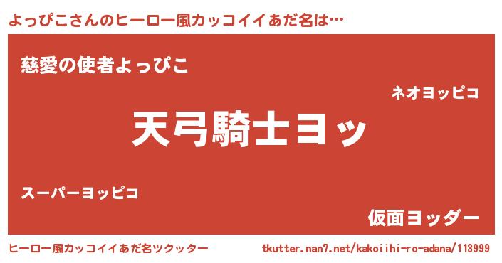 | 男性向けラノベタイトル風あだ名 | 『よっぴこの嫁は女の子じゃないと思った?』 |