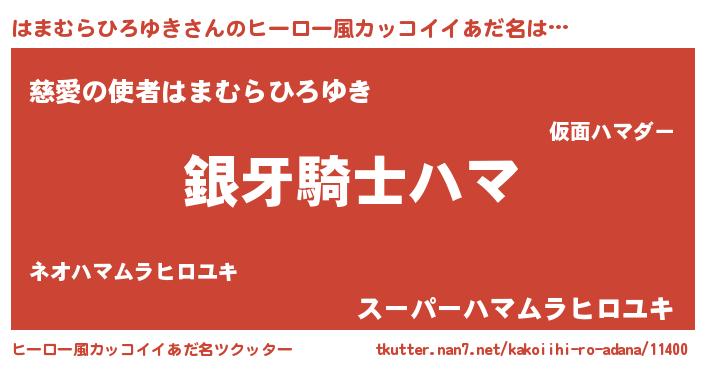 | 男性向けラノベタイトル風あだ名 | 『はまむらひろゆきの嫁は女の子じゃないと思った?』 |