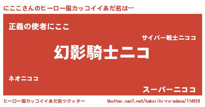 | 女子向けラノベタイトル風あだ名 | 『にここの卵を拾いまして』『闇のにここ』 |