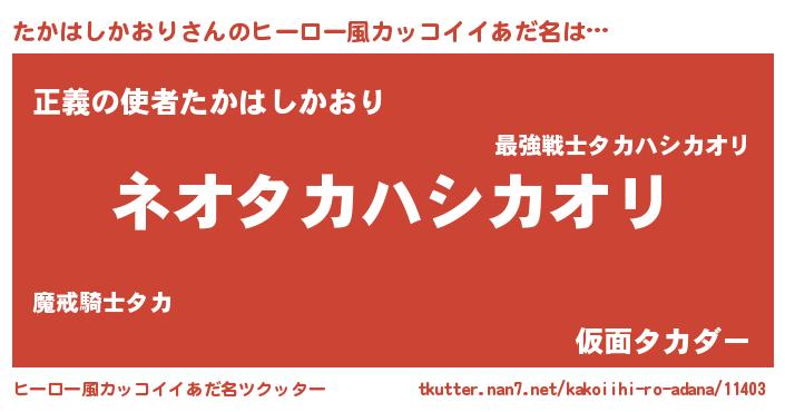 たかはしかおりさんのヒーロー風カッコイイあだ名をツクッター!