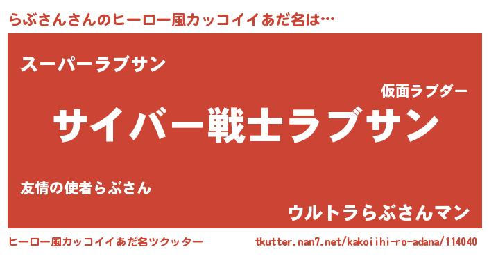| 男性向けラノベタイトル風あだ名 | 『Re:らぶさんから始める異世界生活』 |