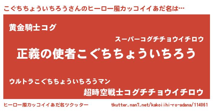 | 男性向けラノベタイトル風あだ名 | 『緋弾のコグチチョウイチロウ』 |