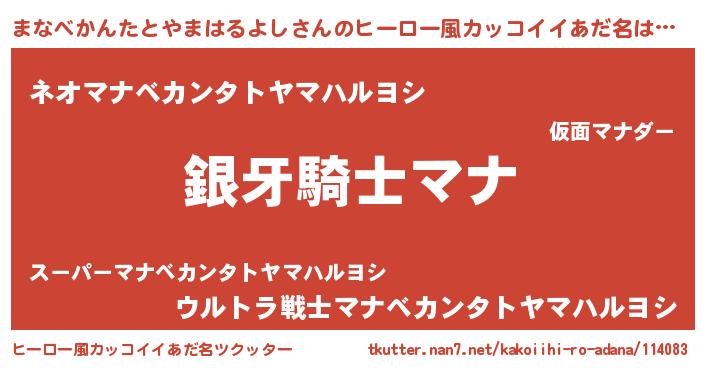 | 男性向けラノベタイトル風あだ名 | 『まなべかんたとやまはるよしの嫁は女の子じゃないと思った?』 |
