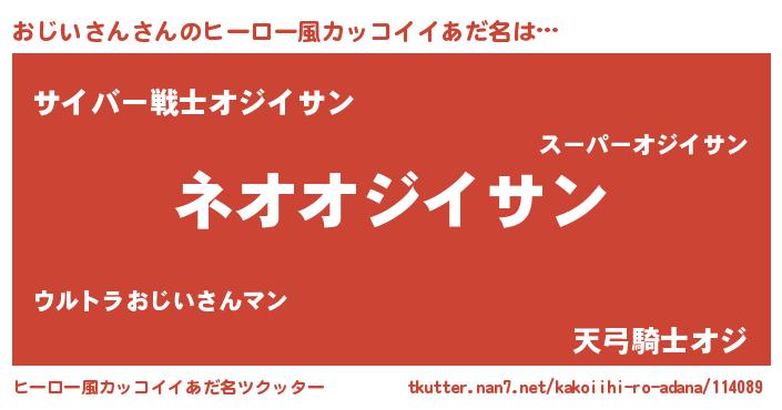 | 胡散臭い通販商品みたいなあだ名 | 『絶対に幸福をもたらす水素水…その名も「おじいさん」』 |