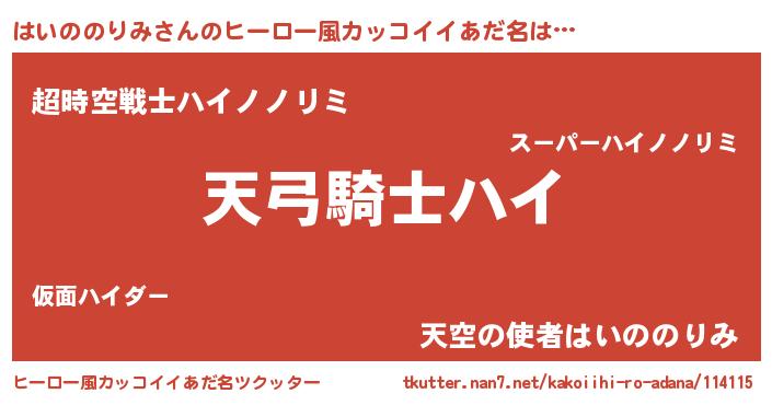| 男性向けラノベタイトル風あだ名 | 『うちのはいののりみが世界を掌握している!』 |