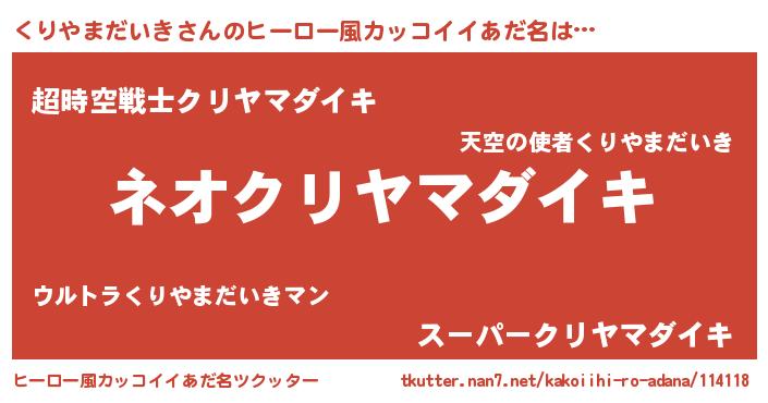 | ヘコむあだ名 | 『くりやまだいき(笑)』『くりっふぃ~』 |