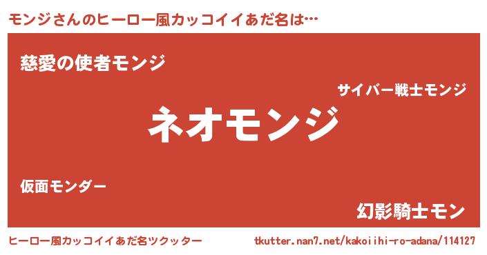 | 男性向けラノベタイトル風あだ名 | 『モンジという概念が存在しない退屈な世界 』 |