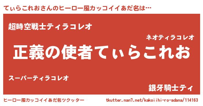 | ヘコむあだ名 | 『てぃっ子』『てぃらこれお(爆)』 |