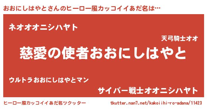 | 男性向けラノベタイトル風あだ名 | 『ノーゲーム・ノーオオニシハヤト』 |