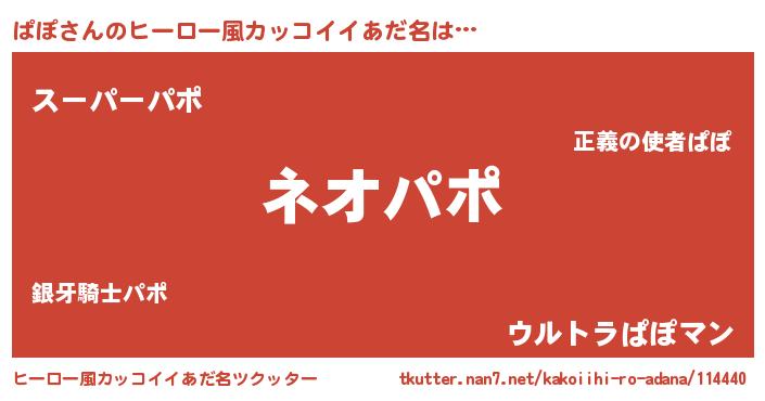 | 男性向けラノベタイトル風あだ名 | 『ぱぽ~年齢イコール彼女いない歴の魔法使い~』 |