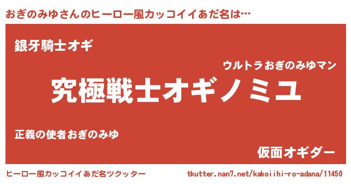 | 男性向けラノベタイトル風あだ名 | 『おぎのみゆ~年齢イコール彼女いない歴の魔法使い~』 |