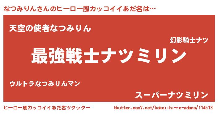 | 男性向けラノベタイトル風あだ名 | 『Re:なつみりんから始める異世界生活』 |