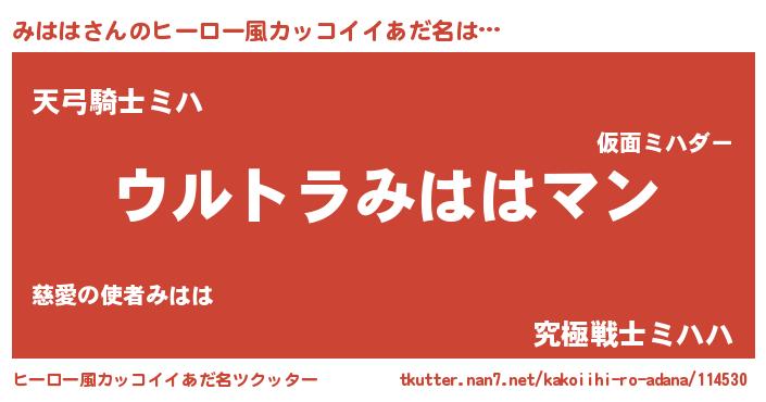 | 男性向けラノベタイトル風あだ名 | 『うちの娘の為ならば、俺はもしかしたらみははも倒せるかもしれない。』 |