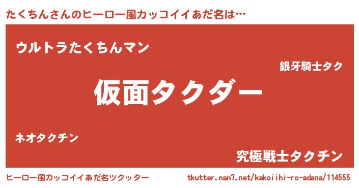 | 男性向けラノベタイトル風あだ名 | 『この素晴らしい世界にたくちんを!』 |