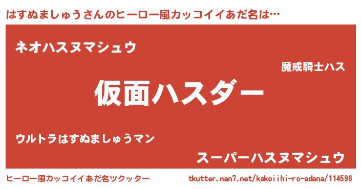 | 胡散臭い通販商品みたいなあだ名 | 『あなたにだけ特別に提供する世界で10本だけ現存している希少なブランデー…その名も「はすぬましゅう」』 |