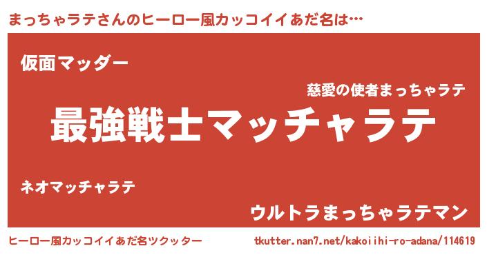| 男性向けラノベタイトル風あだ名 | 『まっちゃラテに滅ぼされるだけの簡単なお仕事です』 |