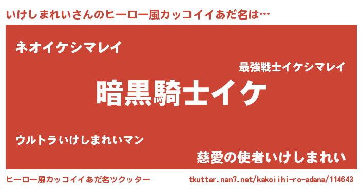 | ポケモン風あだ名 | 『ヒイケシマレイ』『ゼニイケ』 |