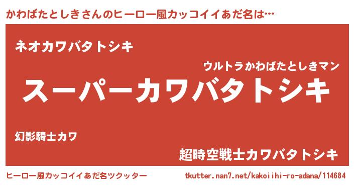 かわばたとしきさんのヒーロー風カッコイイあだ名をツクッター!