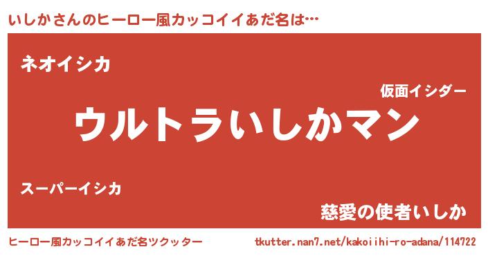 | 男性向けラノベタイトル風あだ名 | 『いしかに滅ぼされるだけの簡単なお仕事です』 |