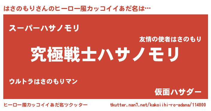 | 女子向けラノベタイトル風あだ名 | 『はさのもりストレイドッグス』 |