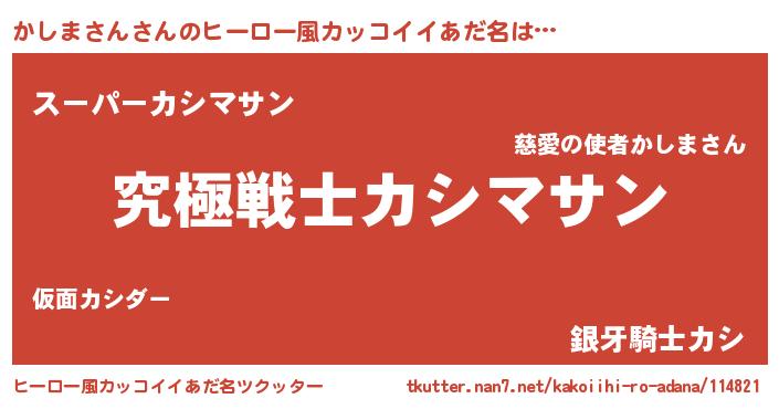 かしまさんさんのヒーロー風カッコイイあだ名をツクッター!