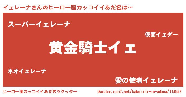| ポケモン風あだ名 | 『ヒイェレーナ』『イェチュウ』 |
