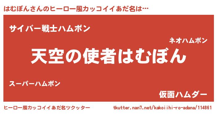 | 男性向けラノベタイトル風あだ名 | 『ノーゲーム・ノーハムボン』 |