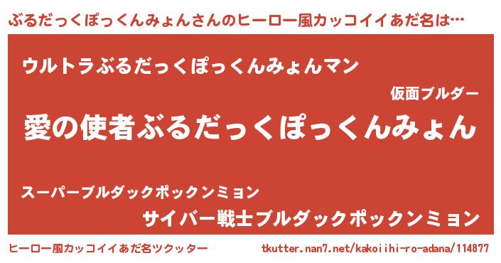 | 女子向けラノベタイトル風あだ名 | 『ぶるだっくぽっくんみょん恋絵巻』 |