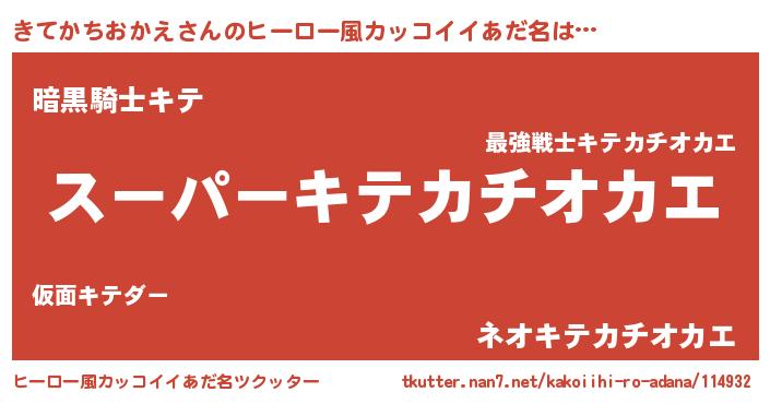 | 男性向けラノベタイトル風あだ名 | 『きてかちおかえの憂鬱』 |