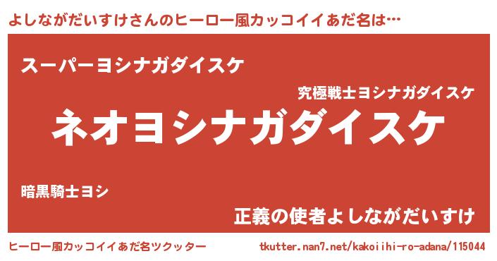 | ヘコむあだ名 | 『よしながだいすけ(震え声)』『よしにゅー』 |