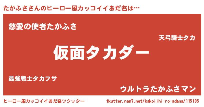 | 男性向けラノベタイトル風あだ名 | 『魔弾の王とたかふさ』 |